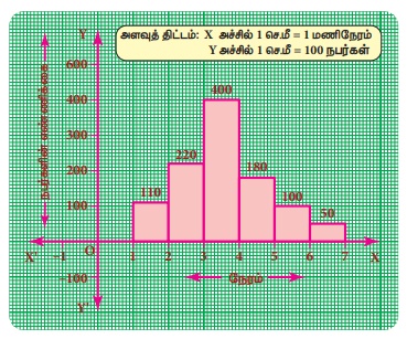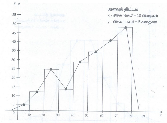 (ii) …………… என்பது ஒரு வரைப்படம். அது ஒரு குறிப்பிட்ட கால இடைவெளியில் தொடரிச்சியாக மாறிக் கொண்டே இருக்கும் மதிப்புகளின் இடபெயர்ச்சி ஆகும். விடை : நிகழ்வுச் செவ்வகம்