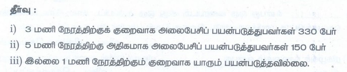 (i) 3 மணிநேரத்திற்குக் குறைவாக அலைபேசிப் பயன்படுத்துபவர்கள் எத்தனை பேர்?