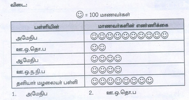 2. ஒரு குறிப்பிட்ட ஆண்டின் 5 பள்ளிகளில் படித்த மொத்த மாணவர்களின் விவரம் பின்வருமாறு அளிக்கப்படுகிறது.