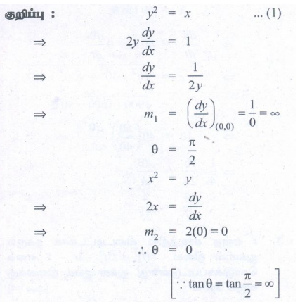9. ஆதியில் y2 = x மற்றும் x2 = y என்ற வளைவரைகளுக்கு இடைப்பட்ட கோணம்