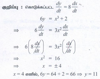 5. 6y = x3 + 2 என்ற வளைவரையின் எப்புள்ளியில் y-ஆயத்தொலைவின் மாறுபாட்டு வீதம் x- ஆயத்தொலைவின் மாறுபாட்டு வீதத்தைப் போல் 8 மடங்கு இருக்கும்.