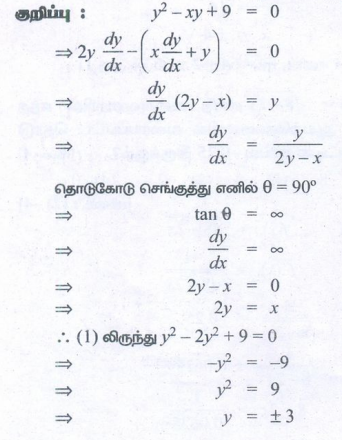 8. y2 - xy + 9 = 0 என்ற வளைவரையின் தொடுகோடு எப்போது நிலைகுத்தாக இருக்கும்?