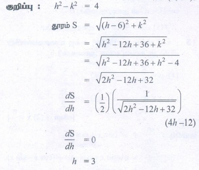 17. (6,0) என்ற புள்ளிக்கும் x2 - y2 = 4 என்ற வளைவரை மீதுள்ள புள்ளிக்கும் உள்ள தொலைவுகுறைந்தபட்சம் எனில் அப்புள்ளி