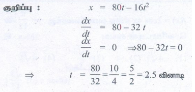 4. ஒரு கல்லான]து செங்குத்தாக மேல்நோக்கி எறியப்படுகின்றது. t நேரத்தில் அது அடைந்த உயரம் x = 80t -16t2. கல் அதிகபட்ச உயரத்தை t வினாடி நேரத்தில் அடைந்தால் t ஆனது