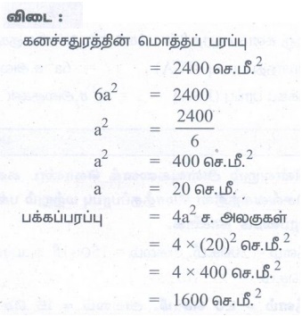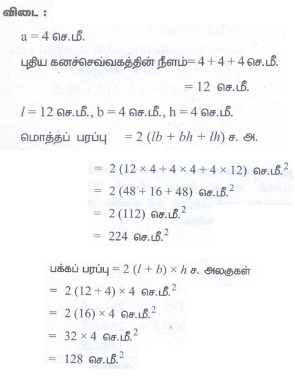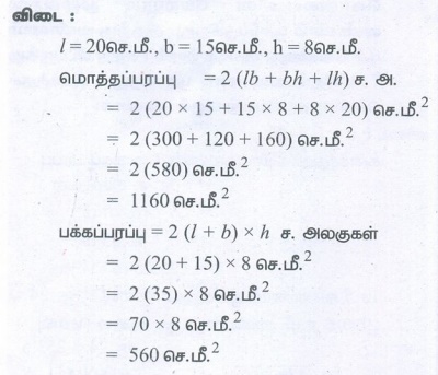 எண்ணியல் கணக்குகள் பதில்கள் மற்றும் தீர்வுகள் | அளவியல் | கணக்கு - பயிற்சி 7.2: கனச்செவ்வகம் மற்றும் கனச்சதுரத்தின் புறப்பரப்பு (Surface Area of Cuboid and Cube) | 9th Maths : UNIT 7 : Mensuration