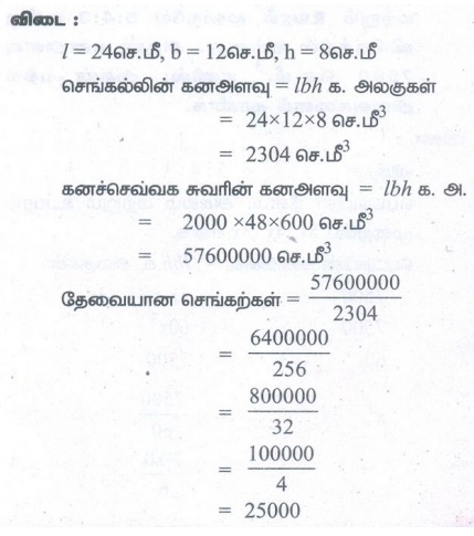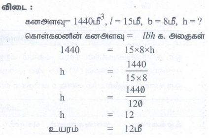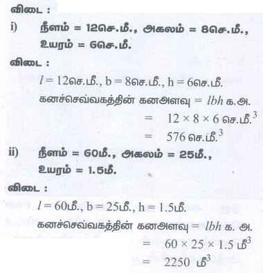 எண்ணியல் கணக்குகள் பதில்கள் மற்றும் தீர்வுகள் | அளவியல் | கணக்க - பயிற்சி 7.3: கனச்செவ்வகம் மற்றும் கனச்சதுரத்தின் கனஅளவு (Volume of Cuboid and Cube) | 9th Maths : UNIT 7 : Mensuration