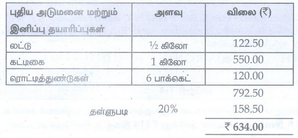 3. கொடுக்கப்பட்டப் படத்திலிருந்து விலைப் பட்டியலைத் தயார் செய்க.