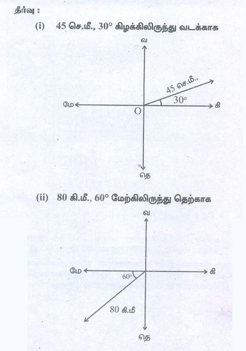 (i) 45 செ.மீ., 30° கிழக்கிலிருந்து வடக்காக