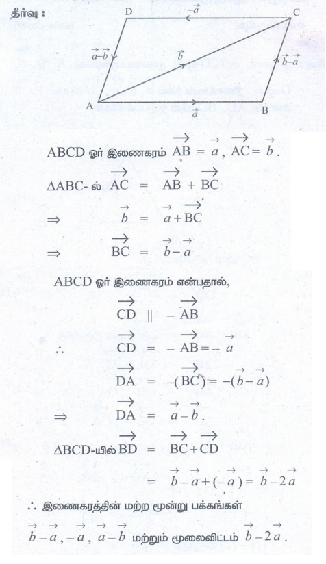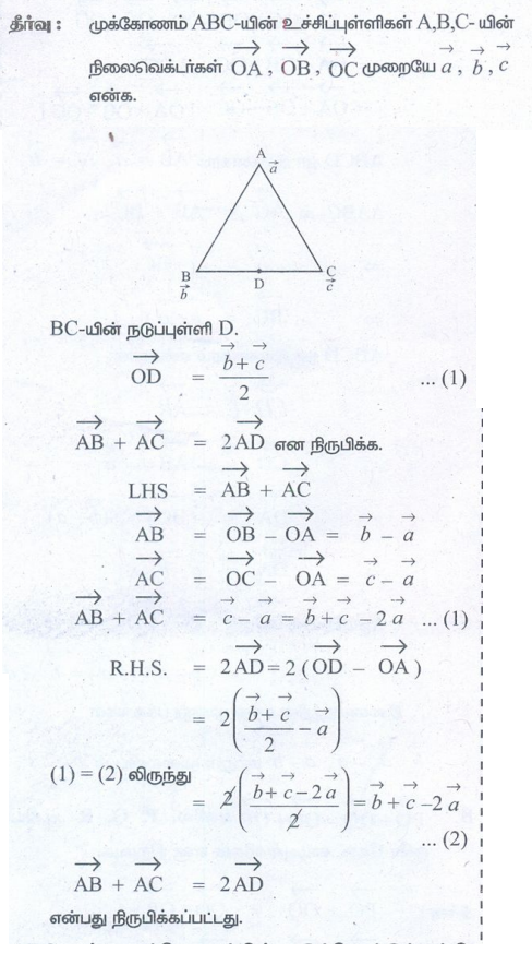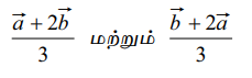 (3) A மற்றும் Bஆகியவை −ன் நிலைவெக்டர்கள் எனில் ABஎன்ற கோட்டுத்துண்டை மூன்று சம பாகங்களாக பிரிக்கும் புள்ளிகளின் நிலை வெக்டர்கள்