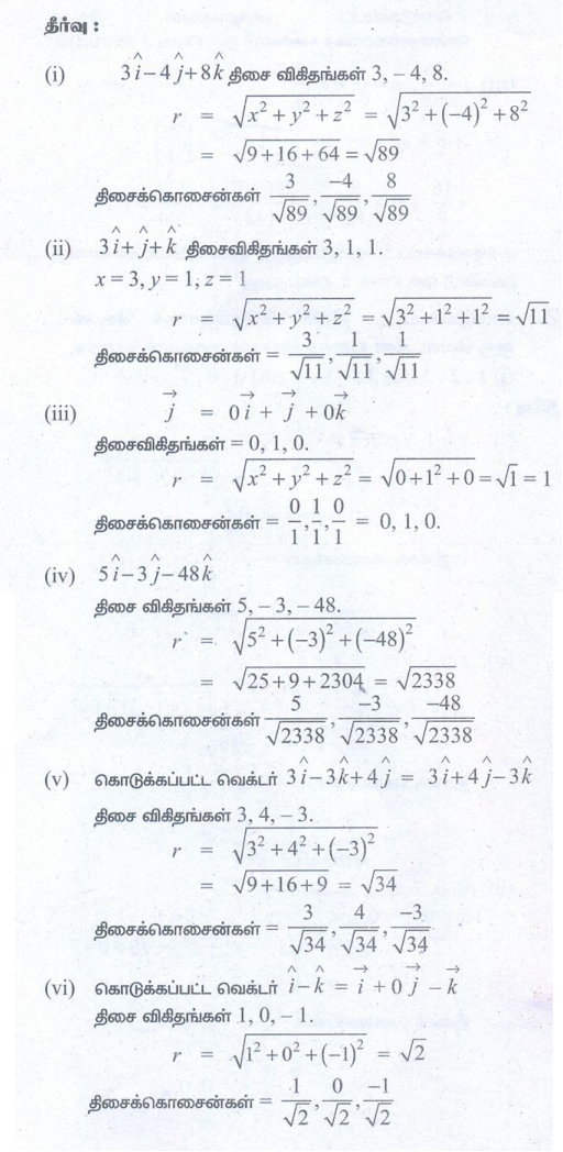 (3) கீழ்க்காணும் வெக்டர்களுக்குத் திசைக் கொசைன்கள், மற்றும் திசை விகிதங்களைக் காண்க.