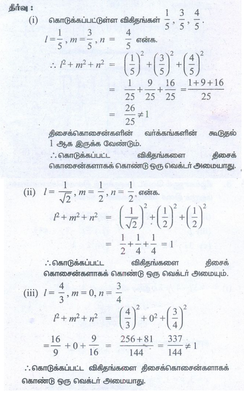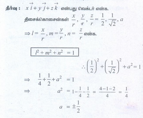 (5) 1/2 ,1/√2 , a ஆகியவை ஒரு வெக்டரின் திசைக்கொசைன்களாயின் a −ன் மதிப்பைக் காண்க.