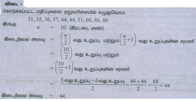 எண்ணியல் கணக்குகள் பதில்கள் மற்றும் தீர்வுகள் | புள்ளியியல் | கணக்கு - பயிற்சி 8.2: இடைநிலை அளவு − வகைப்படுத்தப்படாத நிகழ்வெண் பரவல் (Median −Ungrouped Frequency Distribution) | 9th Maths : UNIT 8 : Statistics
