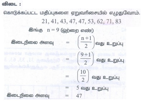 வகுப்பில் தொகுத்தறி மதிப்பீட்டில் மாணவர்கள் எடுத்த மதிப்பெண்களுக்கு இடைநிலை அளவு காண்க.