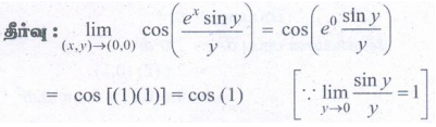 4. எல்லை மதிப்பு இருக்குமானால், lim(x,y)→(0,0) cos ( ex sin y / y) -ஐ மதிப்பிடுக.
