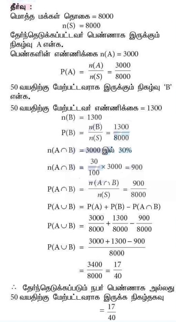 கேள்வி பதில்கள் மற்றும் தீர்வுகள் | கணக்கு - பயிற்சி 8.4 : நிகழ்தகவின் கூட்டல் தேற்றம் | 10th Mathematics : UNIT 8 : Statistics And Probability