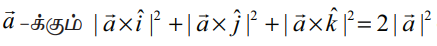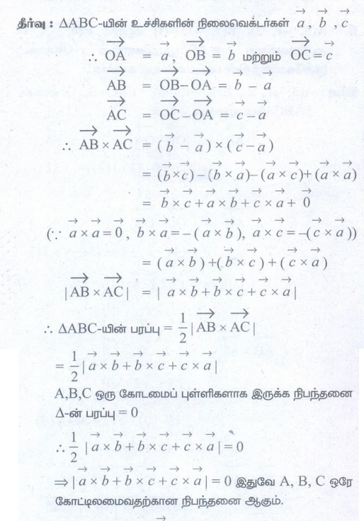(7) முக்கோணம் ABC−ன் உச்சிப்புள்ளிகள் A, B, C−ன் நிலை வெக்டர்கள் முறையே எனில், முக்கோணம் ABC−ன் பரப்பளவு