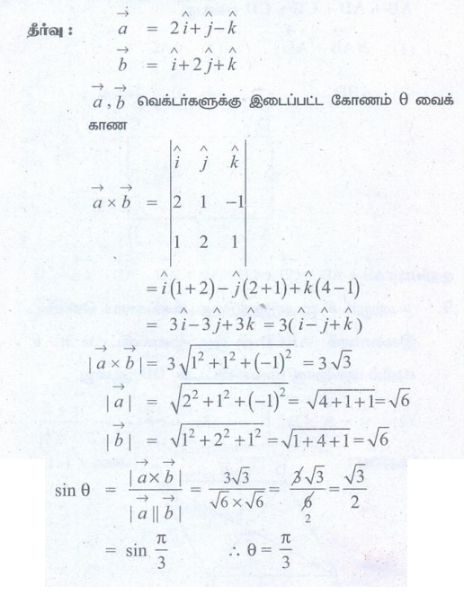(10) ஆகிய வெக்டர்களுக்கு இடைப்பட்ட கோணத்தை வெக்டர் பெருக்கத்தைப் பயன்படுத்திக் காண்க.