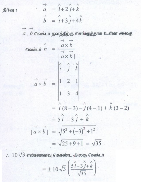 (3) என்ற வெக்டர்கள் உள்ள தளத்திற்கு செங்குத்தாகவும் எண்ணளவு 10√3 உடைய அலகு வெக்டர்களைக் காண்க.