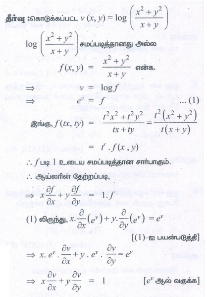 5. v(x,y) = log (x2 + y2 / x+y) எனில் x ∂v /∂x + y ∂v/ ∂y = 1என நிறுவுக.