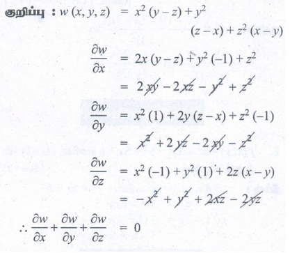 14. w(x,y,z) = x2(y-z)+ y2 (z - x) + z2 (x - y), எனில் ∂w/∂x + ∂w/∂y + ∂w/∂z -ன் மதிப்பு