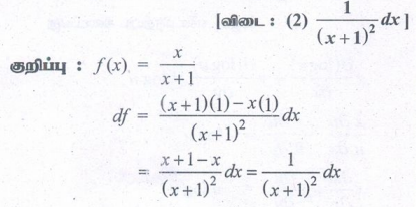 11. f (x) = x / x+1, எனில் அதன் வகையீடு