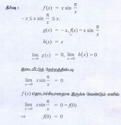 (13) f(x) = x sin π/x என்க. f(0)−ன் எந்த மதிப்புக்கு f எல்லா இடங்களிலும் தொடர்ச்சியானதாக இருக்கும்?