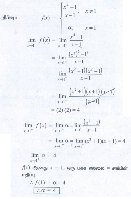 (6) என வரையறுக்கப்பட்ட சார்பில் x = 1−இல் சார்பு தொடர்ச்சியானது எனில், α−ன் மதிப்பு காண்க.