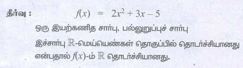 (1) f(x) = 2x2 + 3x – 5 ℝ −ன் எல்லா புள்ளிகளிலும் தொடர்ச்சியானது என நிறுவுக.