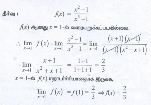 புத்தக கணக்குகளுக்கான பதில்கள், தீர்வுகள் | கணக்கு - பயிற்சி 9.5: தொடர்ச்சியான சார்புகளின் இயற்கணிதம் (Algebra of continuous functions), நீக்கக் கூடிய மற்றும் துள்ளல் தொடர்ச்சியற்ற தன்மை (Removable and Jump discontinuities) | 11th Mathematics : UNIT 9 : Differential Calculus Limits and Continuity