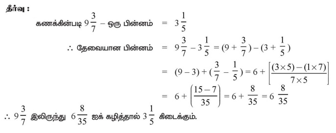 என்ற பின்னத்திலிருந்து எந்தப் பின்னத்தைக் கழிக்க வேண்டும்?