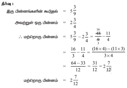 கேள்வி பதில் மற்றும் தீர்வுகள் | பின்னங்கள் | பருவம் 3 அலகு 1 | 6 ஆம் வகுப்பு கணக்கு - பயிற்சி 1.2 | 6th Maths : Term 3 Unit 1 : Fractions