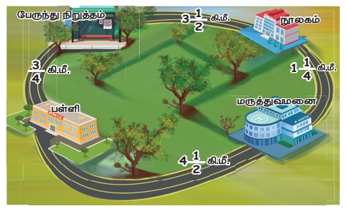 2. ஒருவர் தன் அலுவலகத்திலிருந்து 5¾ கி.மீ தொலைவிலுள்ள தன் வீட்டிற்கு நடந்து செல்ல விரும்பினார். அவர் 2½ கி.மீ கடந்த பின்னர் அவரது வீட்டை அடைய எவ்வளவு தொலைவு நடந்து செல்ல வேண்டும்?