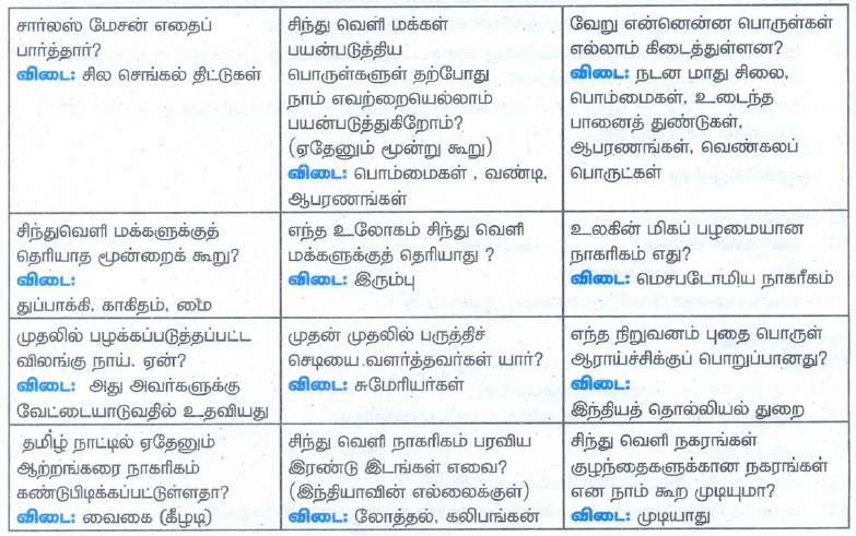 பருவம் 1 அலகு 3 | வரலாறு | 6 ஆம் வகுப்பு சமூக அறிவியல் - வினா விடை | 6th Social Science : History : Term 1 Unit 3 : Indus Civilisation