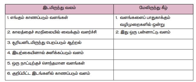 தொடர்பான படங்களை உற்று நோக்கி அட்டவணையை நிரப்புக.