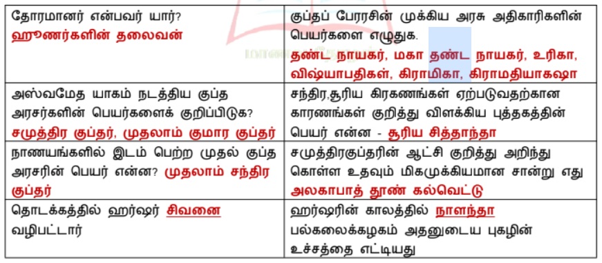 பருவம் 3 அலகு 3 | வரலாறு | 6 ஆம் வகுப்பு சமூக அறிவியல் - வினா விடை | 6th Social Science : History : Term 3 Unit 3 : The Age of Empires: Guptas and Vardhanas