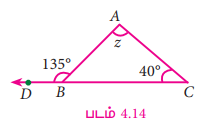 படத்தில் கொடுக்கப்பட்டுள்ள ∆ABC இல் z இன் மதிப்பு காண்க.