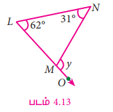 ∠L = 62° மற்றும் ∠N = 31° எனில், ∠NMO ஐக் காண்க.