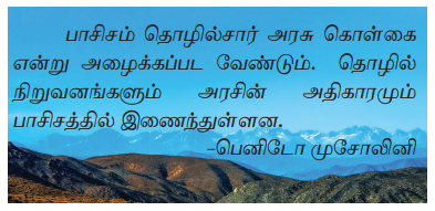 பாசிசம் தொழில்சார் அரசு கொள்கை என்று அழைக்கப்பட வேண்டும். தொழில் நிறுவனங்களும் அரசின் அதிகாரமும் பாசிசத்தில் இணைந்துள்ளன. - பெனிடோ முசோலினி