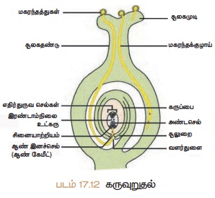 இனச்செல்லும் சூல்பையை அடைகின்றது.