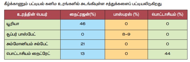 என அழைக்கப்படுகின்றன. (எ.கா) யூரியா, சூப்பர் பாஸ்பேட், அம்மோனியம் சல்பேட் மற்றும்