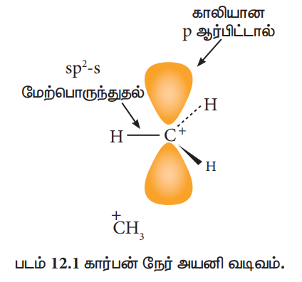 கார்பன் நேர்அயனியில் உள்ள கார்பனின் இனக்கலப்பு: