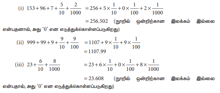 (i) 6 நூறுகள் + 3 பத்துகள் + 3 ஒன்றுகள் + 6 நூறில் ஒன்றுகள் + 3 ஆயிரத்தில் ஒன்றுகள்