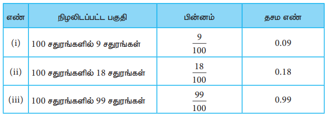 பின்னங்களுக்கும் தசம எண்களுக்கும் இடையேயான தொடர்பினைக் காணலாம்.