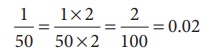 (iv) 1/50 என்ற பின்னத்திற்குப் பகுதி 100 ஆக இருக்குமாறு சமான பின்னதைக் காணலாம்.