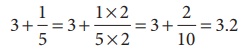 (v) 3 1/5 இல் முழு எண் பகுதி 3, பின்னமான 1/5 இன் பகுதி 10 ஆக இருக்குமாறு சமான பின்னத்தைக் காண