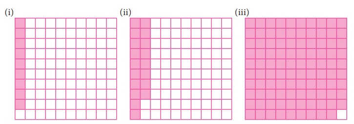 கீழ்க்காணும் படங்களில் உள்ள நிழலிடப்பட்ட பகுதியினைப் பின்னமாகவும் தசம எண்ணாகவும் குறிப்பிடுக.
