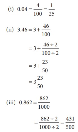 1. பின்னங்களை தசம எண்களாக மாற்றுதல் (Conversion of Fractions to Decimals)