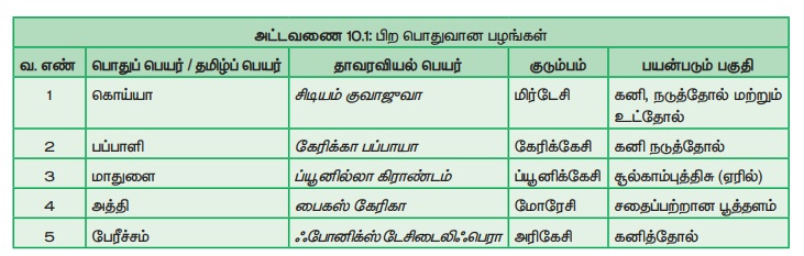 பயன்கள்,தோற்றம் மற்றும் விளையுமிடம்,தாவரவியல் பெயர் - உணவு தாவரங்கள் - பழங்கள் | 12th Botany : Chapter 10 : Economically Useful Plants and Entrepreneurial Botany