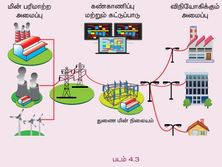 படமானது மின் வழங்கல் வலைப்பின்னல் முறையை விளக்குகிறது.