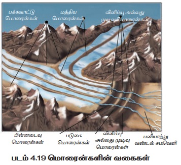 iv. விளிம்பு அல்லது முடிவு மொரைன்கள் (Terminal or End Moraines)